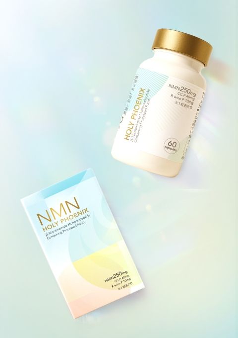 ニコチンアミドモノヌクレオチド(NMN)にササクレヒトヨタケエキス、レスベラトロールを組み合わせたことで、「美しく健康に生きていく!まるで“聖なる不死鳥”の様に!」という願いを込めた新しいコンセプトのサプリメントです。